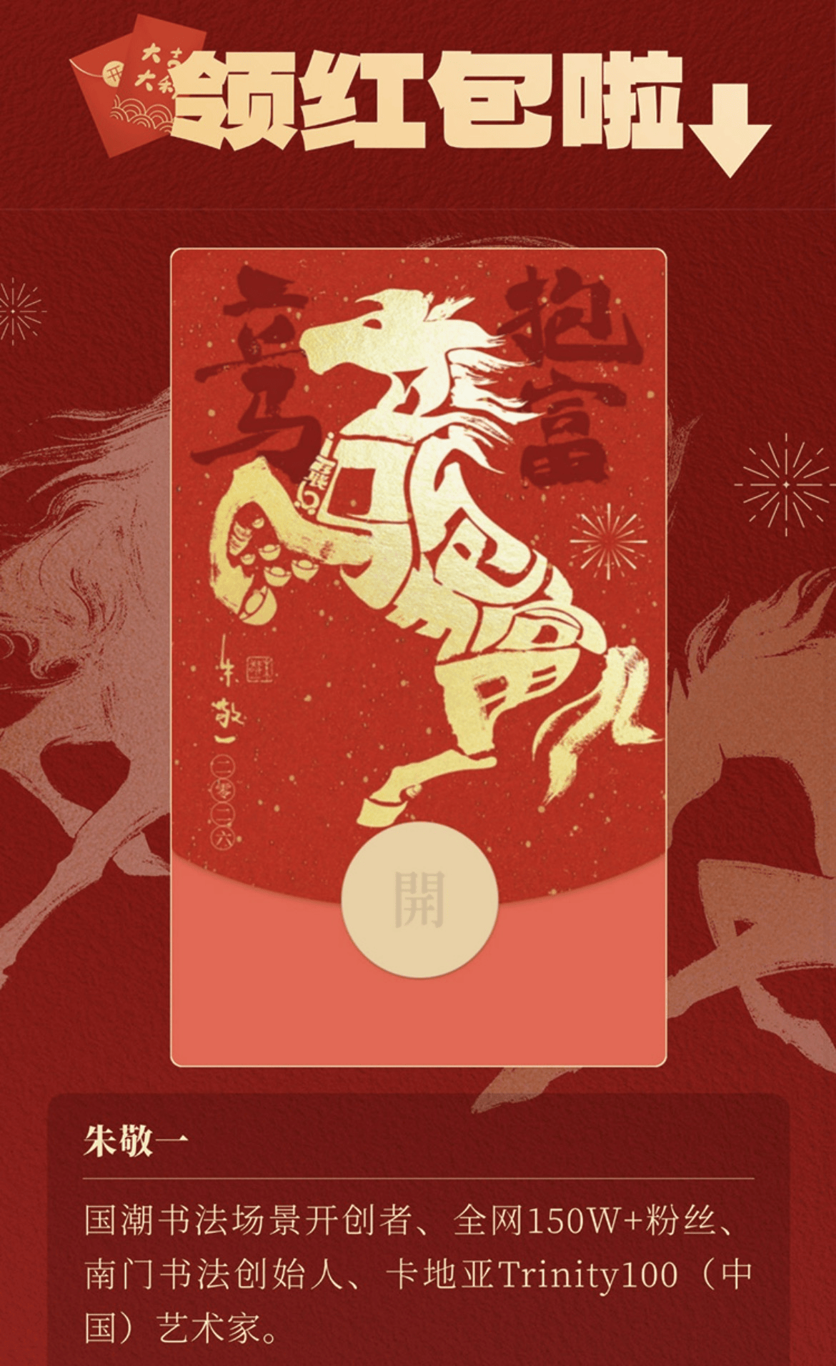 特别值得一提的是,平台联合国潮书法家朱敬一推出的联名红包封面可免费领取,这一充满文化韵味的福利,为新春增添了独特的仪式感与文化气息。